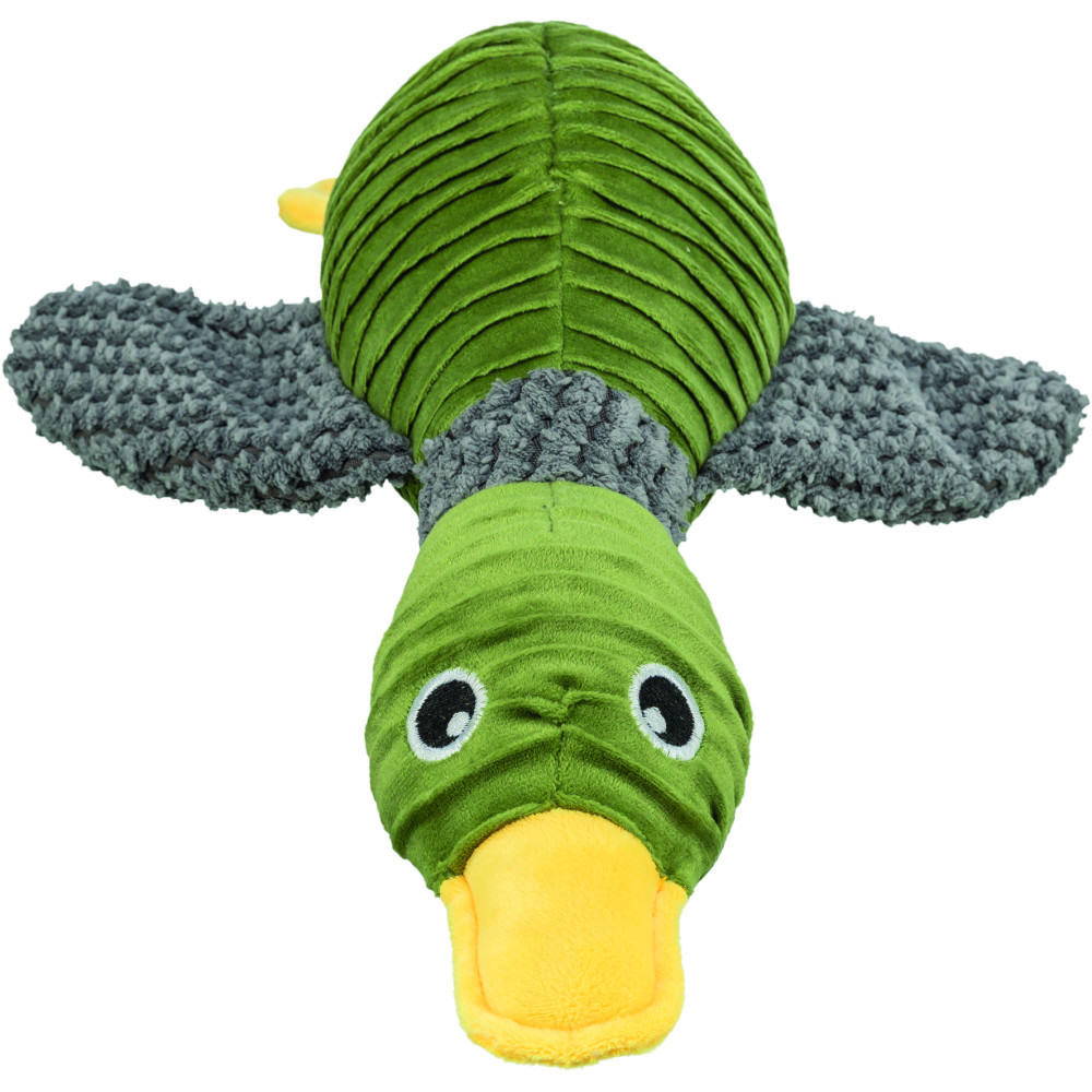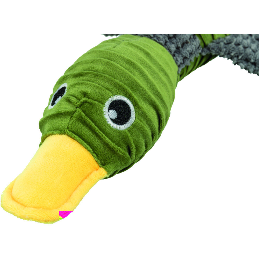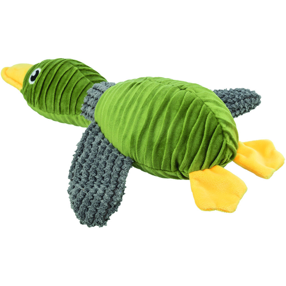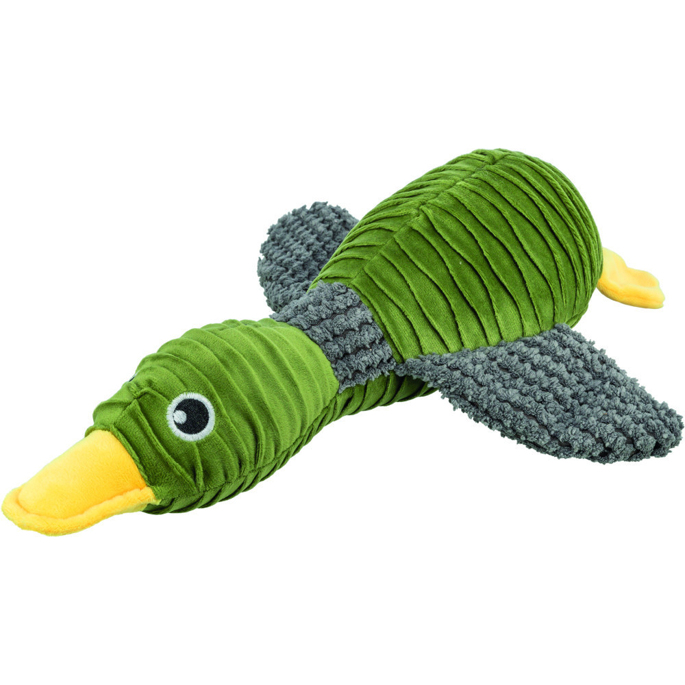 Що може бути кращим, ніж полювання на качку? Лише полювання на екодружню качку! Іграшка для собак Trixie Duck з перероблених матеріалів – це не просто забавка, а справжній герой пригод вашого песика. А при натисканні качка видає кумедні звуки.Даруйте своєму улюбленцю радість від гри, знаючи, що ви робите світ трішки кращим!Матеріали:плюш (поліестер)Розміри:40 см