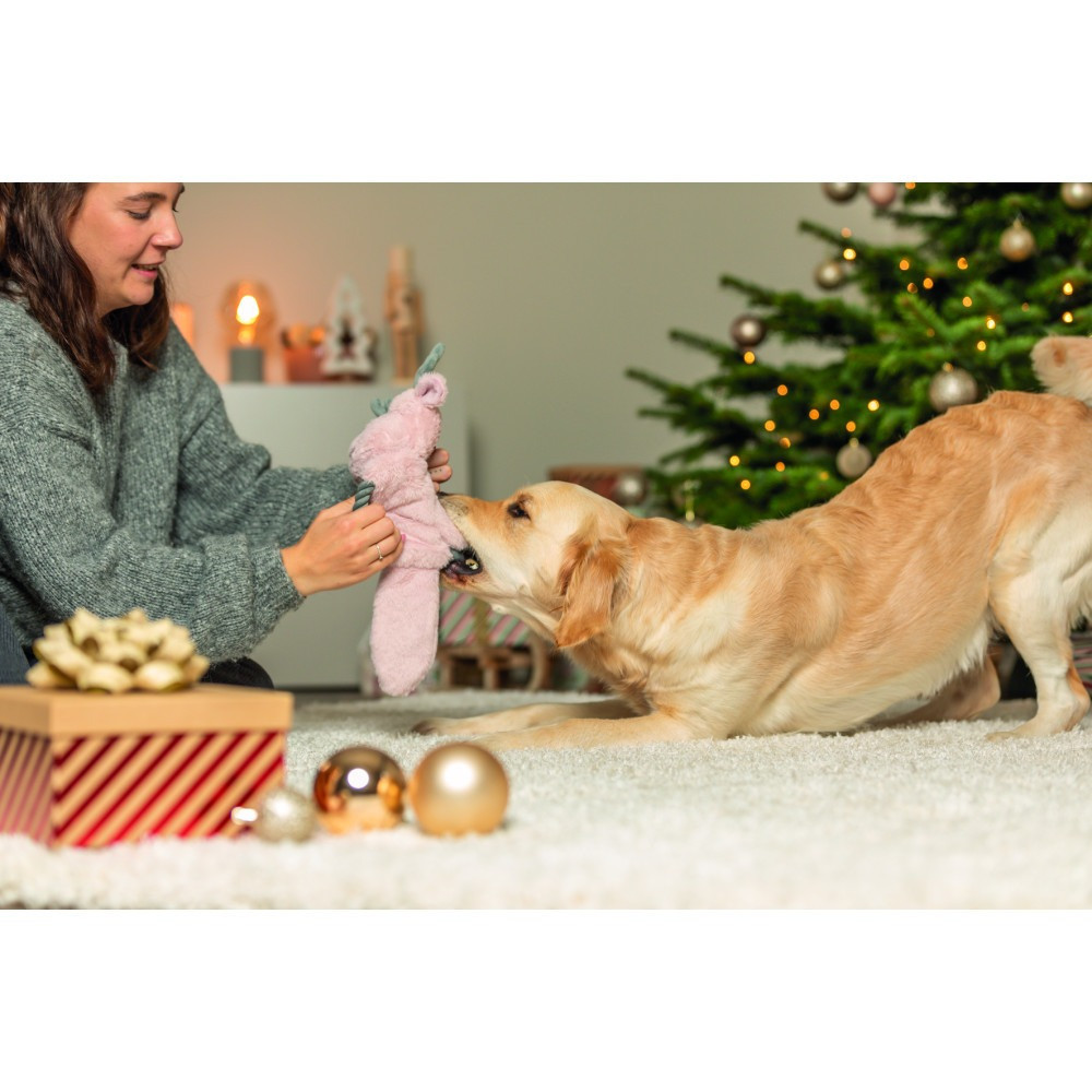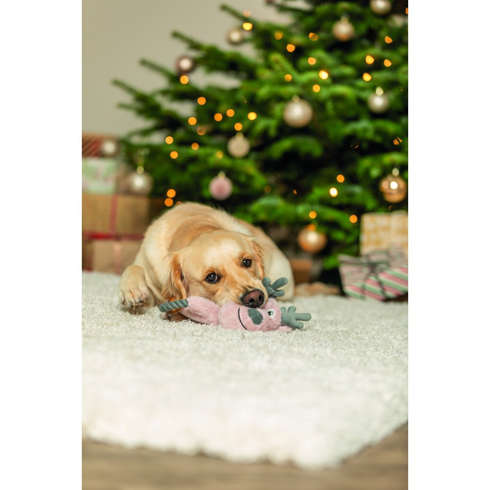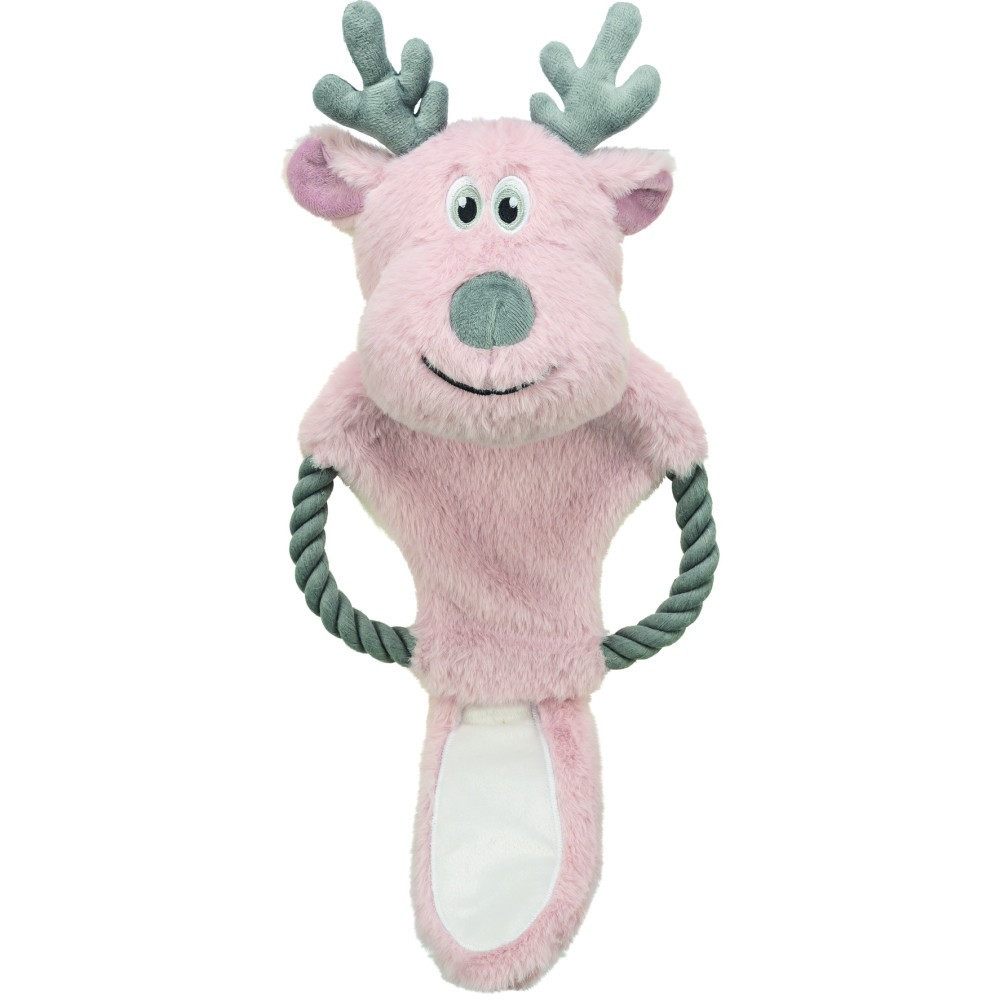 Іграшка для собак Trixie «Різдвяний Олень» – ідеальна для перетягування та обіймів!Цей чарівний олень створений для веселих, активних ігор, а його розмір (47 см) підходить для використання собаками середніх та великих порід.Подвійний матеріал: поєднання м’якого плюшу та міцної бавовняної мотузки забезпечує різноманіття текстур для жування, що задовольняє інстинкти собаки.Ефект шелесту: іграшка має шелесткий елемент, який привертає увагу та стимулює собаку до гри, імітуючи звуки здобичі.Зручність у грі: міцні мотузкові кільця замість лап ідеально підходять для перетягування та спільних ігор зі своїми петбатьками, а також для самостійного хапання.Станьте Святим Миколаєм для свого песика – подаруйте йому цю кумедну та функціональну іграшку!Розмір: 47 смМатеріал: плюш (поліестер)/бавовна