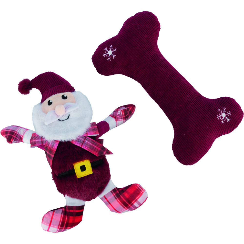 Подарунковий набір для собак – чудовий варіант новорічного презенту для свого улюбленця або оригінальний подарунок для знайомих, в яких є собака. Іграшки виготовлені з міцного поліестера і призначені для активного використання. Кісточка видає цікаві звуки, фігурка Санта Клауса – без звуку. Зробіть свята для песика ще веселішими!Склад:2 іграшки – кісточка, Санта КлаусРозмір:30 смМатеріал:поліестер.* Відтінки кольорів реального товару можуть відрізнятися від фото на екрані пристроїв залежно від виду екрана та його передачі кольору.