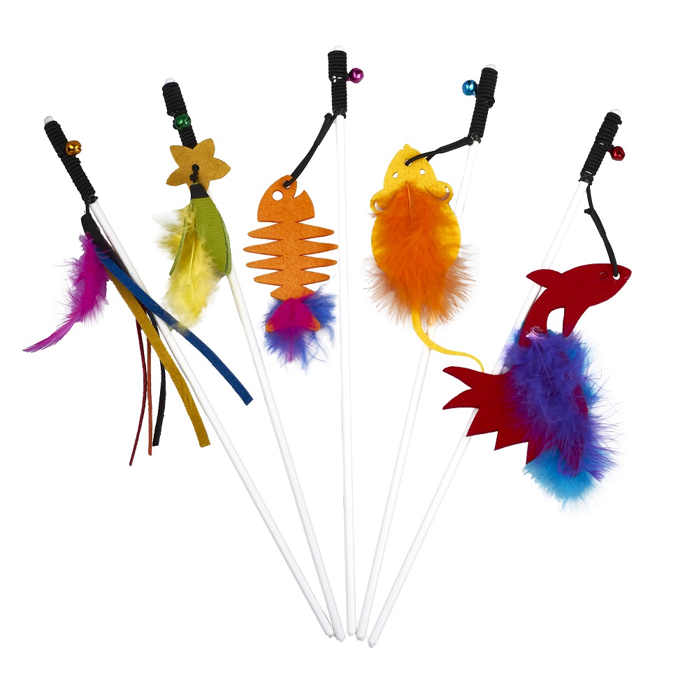 кольорів та форм на вудочці привертає увагу кота, стимулюючи його природні