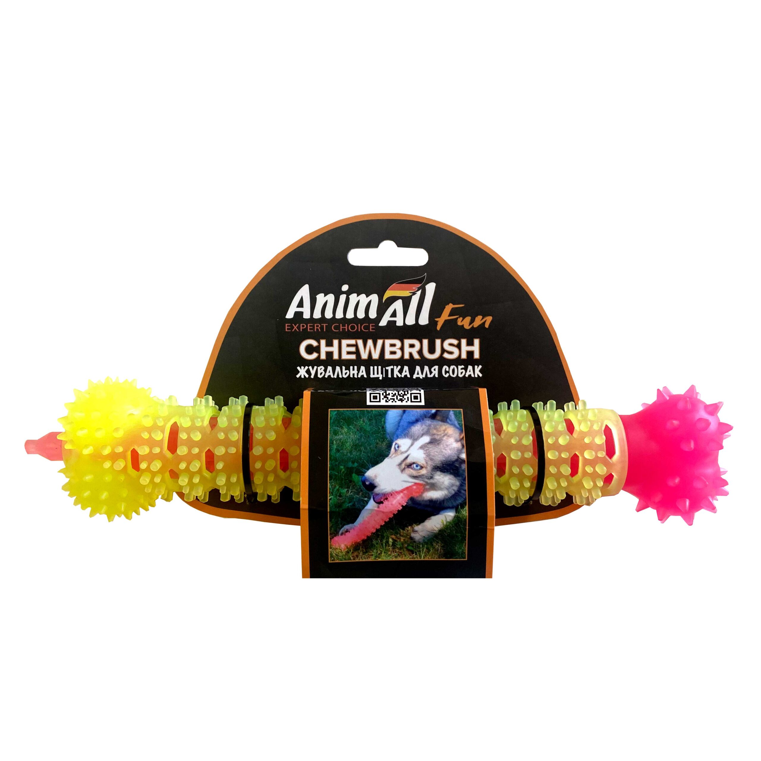AnimAll Фан жувальна щітка-кістка жовта з рожевим, 24 см