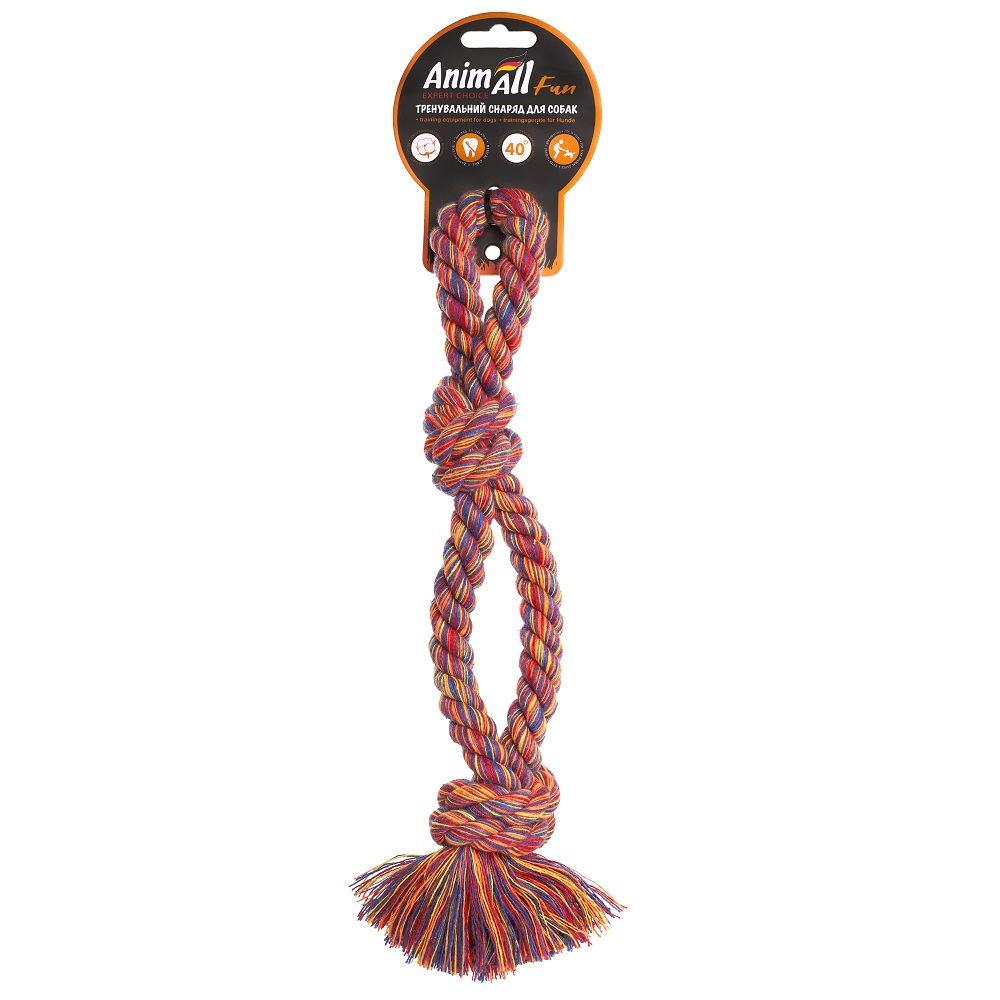 АnimАllFunІграшка-канат кістка подвійна, 36смКожен власник бажає мати практичну та надійну іграшку для свого улюбленця, яка поєднує в собі розвагу та навчання. Ми це врахували та створили лінійку іграшок АnimАll Fun, які спрямовану на задоволення базових потреб чотирилапих друзів.Іграшка-канат кістка подвійна в лінійці AnimAll Funбуде у нагоді для будь-яких видів активностей і подарує Вашому Хвостику незабутні враження. Завдяки великому асортименту іграшки підходять для собак різних розмірів та вікових категорій. Обирайте те, що сподобається вашому улюбленцю, та починайте грати вже зараз!Переваги:Виготовлені з екологічно чистого матеріалу – натуральної бавовни;Міцне сплетіння, витримує активне гризіння улюбленця;Асортимент канатів складається з двох розмірів, що дозволяє охопити малі та великі породи собак;Іграшка є необхідною в період прорізання зубів у малечі, а також використовується як апортувальний предмет під час дресирування;Іграшка корисна для собаки не тільки при розвазі та навчанні, а і як профілактичний аксесуар (очищає зуби, зменшує зубний наліт);Переважають яскраві кольори, тому на прогулянці іграшка точно не загубиться;Можна прати в пральній машинці при 40 С, волокна легко очищаються від бруду.Характеристика:Бренд:AnimAllПризначення:для дорослих собак/цуценятМатеріал:натуральна бавовнаРозмір:36 смКолір:різнокольоровийКраїна виготовлення:УкраїнаВ які ігри можна грати з іграшкою-канатом?Перетягування мотузки:Візьміться за неї руками, і нехай ваш вихованець спробує її у вас перетягнути (“тягни!»), можна давати їй інші команди, наприклад, (“кинь!”). Гра відмінно сприяє навчанню самоконтролю вихованця;”Хованки”: В цю гру можна грати як на вулиці, так і вдома. Дома дайте своєму улюбленцю команду залишатися в кімнаті з іншим членом сім’ї, поки ви ховаєте іграшку. Покличте його, і починайте пошук. Після знаходження іграшки винагородите його смаколиками. Ця гра сприяє розвитку координації в просторі у вашого улюбленця;«Апорт»:Це вже знайома вправа, у якій ви кидаєте іграшку, а ваша собака принесе її назад. Під час гри в апорт додайте елементи тренування: почніть з коротких відстаней, поступово збільшуючи відстань і важкість завдань. Наприклад, використовуйте команду “сидіти” перед киданням іграшки або навчіть собаку чекати на вашу команду перед початком гри;Послух: Використовуйте канат для тренування команд та підвищення слухняності вашого улюбленця. Наприклад, використовуйте його як привабливий предмет під час навчання команди “сидіти” або “стояти”.Чи безпечні матеріали з якими буде взаємодіяти моя тваринка?Натуральна бавовна є безпечною для домашніх тварин. По-перше, вона є нетоксичною, тобто не містить шкідливих речовин. По-друге, бавовна є біорозкладним матеріалом, тому, навіть якщо тварина проковтне маленький шматочок, він з часом розсмокчеться і з меншою ймовірністю спричинить проблеми з травленням. Важливо також, що натуральна бавовна не містить синтетичних волокон, які можуть викликати алергію у чутливих тварин.Догляд за іграшкою:Очищення:Якщо іграшка забруднилася, її можна прати в пральній машині при температурі 40°C. Якщо забруднення дуже сильне, спочатку замочіть іграшку в теплій воді, а потім виперіть її;Перевірка цілісності:регулярно перевіряйте стан іграшки на наявність подряпин, проколів або ін