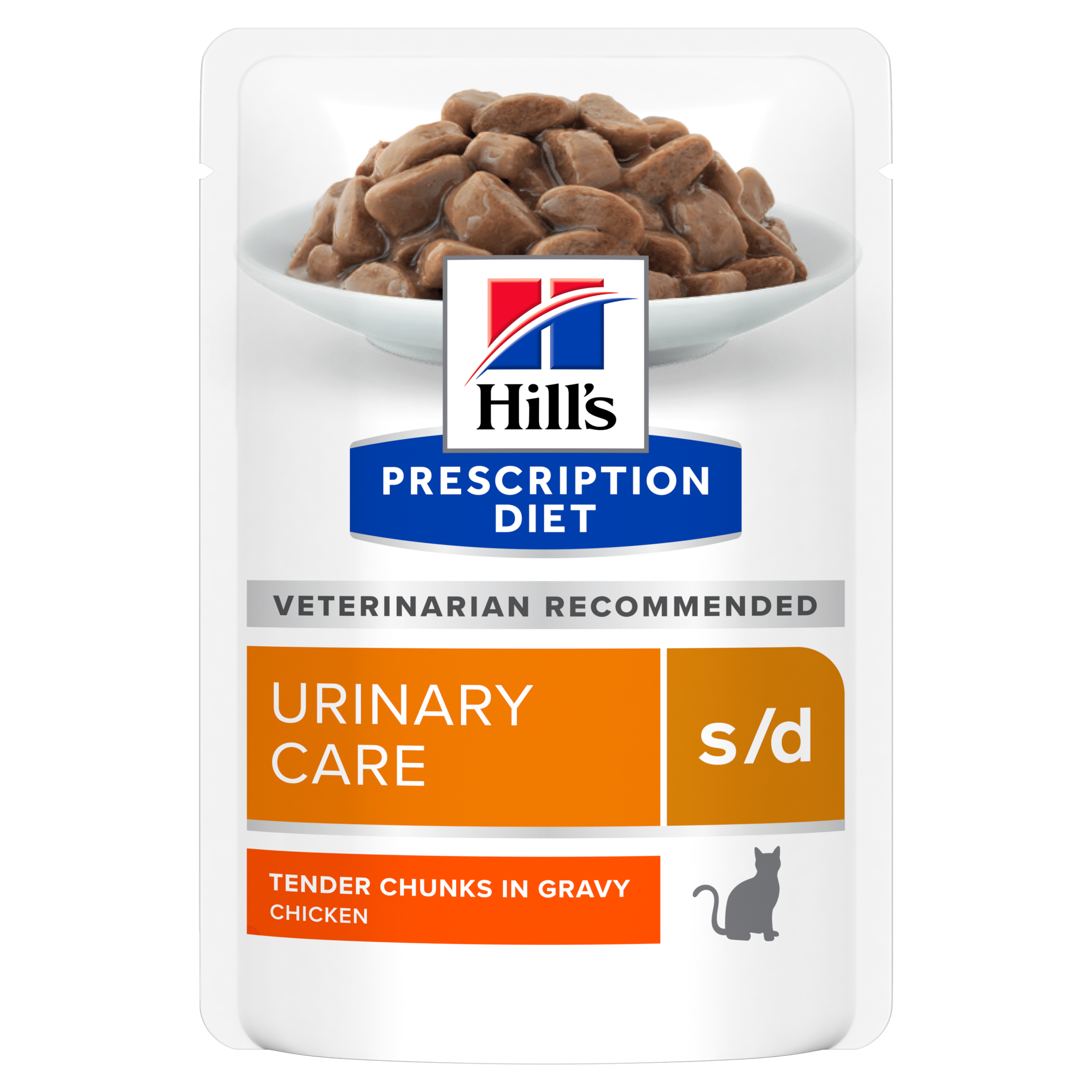 Вологий корм для котів Hill’s PRESCRIPTION DIET s/d, з куркою – повнораціонне дієтичне харчування, спеціально розроблене дієтологами і ветеринарними лікарями, щоб допомогти котам із захворюваннями нижніх відділів сечовивідних шляхів (ЗНВСШ), яким показане розчинення струвітних уролітів.