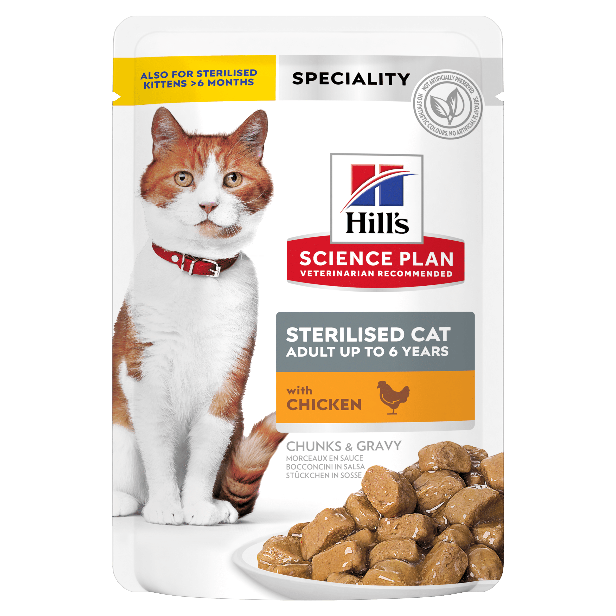 Вологий корм для котів Hill’s SCIENCE PLAN Sterilised, з куркою – повнораціонне харчування, спеціально розроблене дієтологами та ветеринарними лікарями для стерилізованих котів віком від 1 до 6 років.