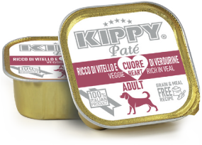KIPPY Dogs Veal and heart of Small Vegetables – консервований корм суперпреміум класу, який виготовлений на основі м’яса качки та доповнений овочами. Корм може використовуватись як повнораціонне харчування, а також може стати чудовим доповненням до раціону тварини. Головним джерелом білка виступає телятина, яка забезпечує собаку необхідною кількістю білка для підтримки енергії протягом дня.