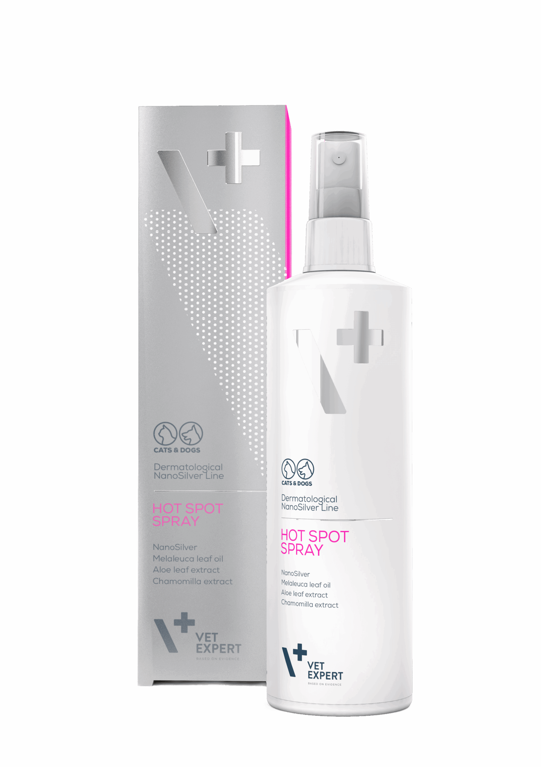 Vet Expert NanoSiver Hot Spot Spray Спрей Наносрібло для гарячих точок працює над найпоширенішим клінічним захворюванням шкіри у котів і собак Гарячі точки. Захворювання має властивість рецидивувати.
