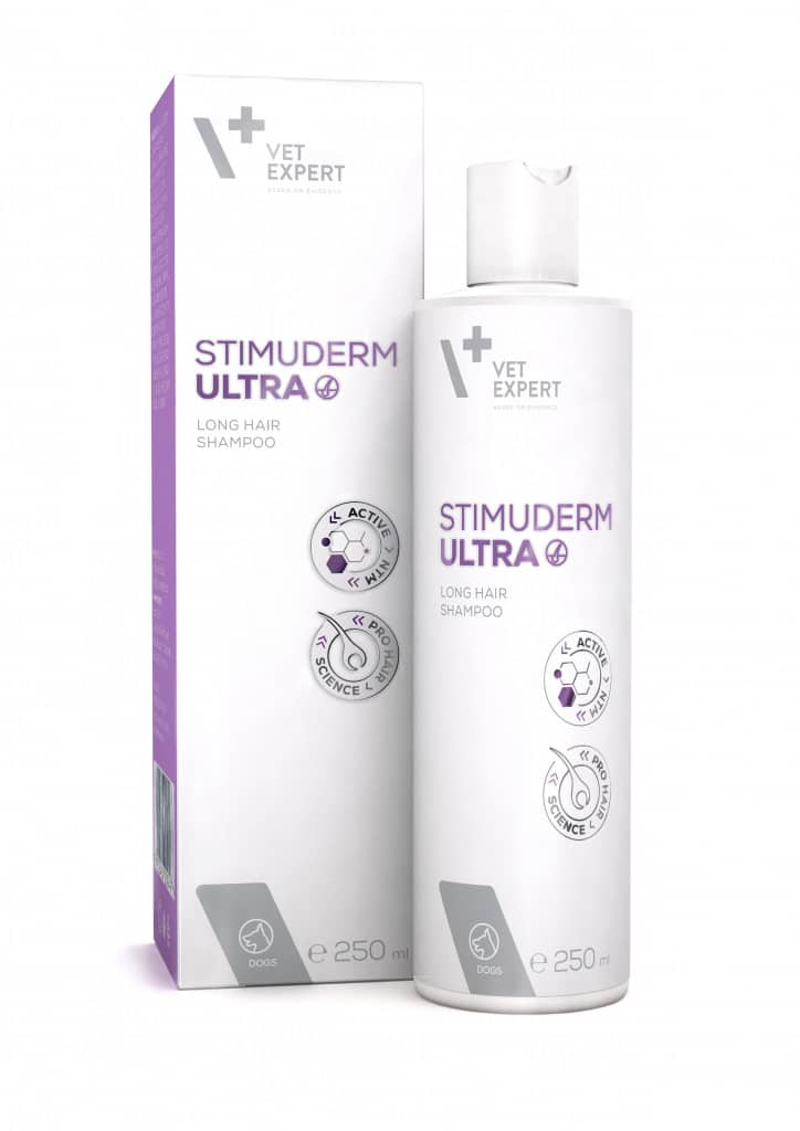 Vet Expert Стимудерм Ультра Шампунь для довгошерстих собак – це інноваційний дермокосметичний шампунь, рекомендований для шкіри та шерсті довгошерстих собак з надмірним випаданням шерсті різного походження та/або з ослабленою шерстю. Активною речовиною шампуню є запатентована молекула ACTIVE NTM з доведеною ефективністю у стимулюванні відростання шерсті. Продукт не містить SLS/SLES, парабенів, ароматизаторів, барвників. Підходить для чутливої шкіри.