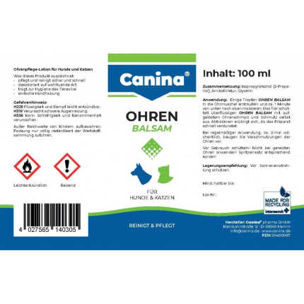 Гігієнічний засіб Canina Ohren-Balsam для собак та котів для вух бальзам 100 мл