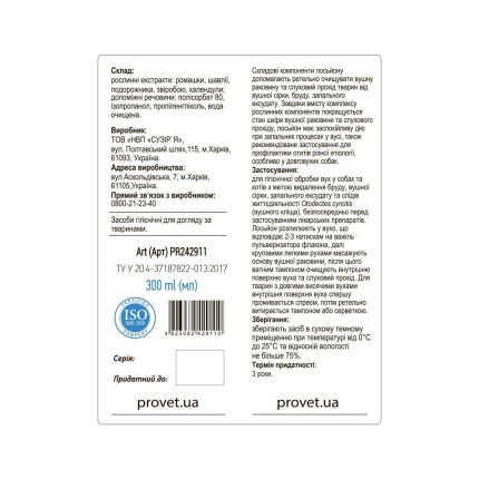 Лосьйон Provet SOFTVET для гігієни вух котів і собак 300 мл