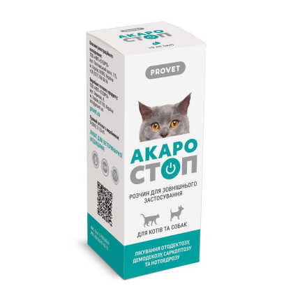 Краплі Provet АКАРОСТОП для котів собак та кроликів для зовнішнього застосування акарицидний препарат 10 мл