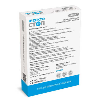 Краплі Provet ІНСЕКТОСТОП для котів та собак від 4 до 6 кг від зовнішніх паразитів на холку 6 піпеток х 0,8 мл