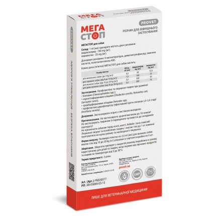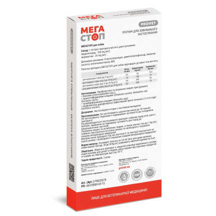 Краплі Provet МЕГАСТОП для собак від 20 до 30 кг від зовнішніх та внутрішніх паразитів 1 піпетка х 3 мл