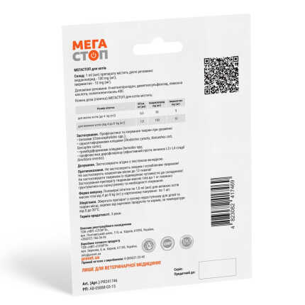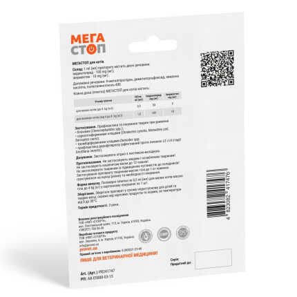 Краплі Provet МЕГАСТОП для котів від 4 до 8 кг від зовнішніх та внутрішніх паразитів 1 піпетка х 1 мл