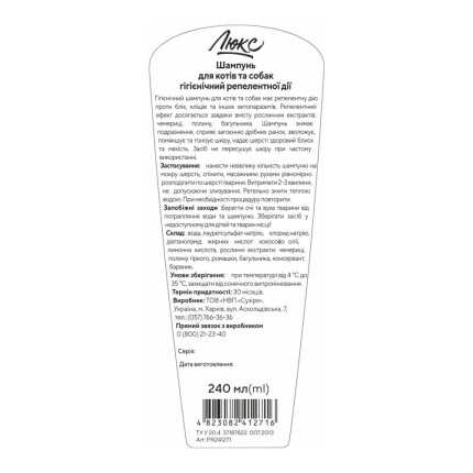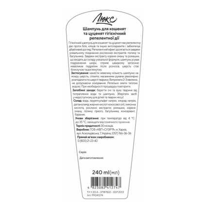 Шампунь Люкс для котів та собак гігієнічний репелентної дії 240 мл