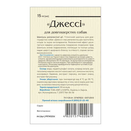 Шампунь Джессі для довгошерстих собак від бліх та кліщів репелентний 15 мл