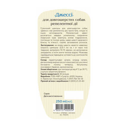 Шампунь Джессі для довгошерстих собак від бліх та кліщів репелентний 250 мл