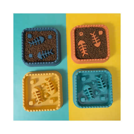 Миска WahoPet для котів для повільного годування з рибками пластикова блакитна
