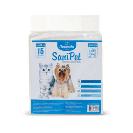 Пелюшки Природа SaniPet для собак гігієнічні целюлоза 45х60 см 15 шт